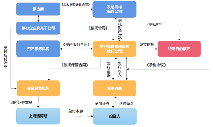 1、該等應(yīng)收賬款債權(quán)系指基礎(chǔ)交易的賣方/承包人/出租人(以下簡(jiǎn)稱“債權(quán)人”)與基礎(chǔ)交易的的買方/工程發(fā)包方/承租人(以下簡(jiǎn)稱“債務(wù)人”)訂立的有關(guān)境內(nèi)貨物貿(mào)易和服務(wù)貿(mào)易、工程建設(shè)、租賃等合同性法律文件,基礎(chǔ)交易的債權(quán)人對(duì)基礎(chǔ)交易的債務(wù)人享有的請(qǐng)求支付對(duì)應(yīng)價(jià)款的權(quán)利。該應(yīng)收賬款債權(quán)為整個(gè)資產(chǎn)支持票據(jù)的基礎(chǔ)債權(quán)。 (1)轉(zhuǎn)讓一手的情形,鐵建下屬成員單位作為基礎(chǔ)交易的債務(wù)人,與基礎(chǔ)交易的債權(quán)人發(fā)生貨物/服務(wù)貿(mào)易、工程承包、租賃業(yè)務(wù)等交易,對(duì)后者負(fù)有支付價(jià)款的義務(wù),將該應(yīng)付賬款在鐵建供應(yīng)鏈金融服務(wù)平臺(tái)為其開具銀信。 (2)轉(zhuǎn)讓2-N手的情形,鐵建下屬成員單位對(duì)基礎(chǔ)交易的債權(quán)人負(fù)有應(yīng)付賬款(該應(yīng)付賬款金額與所開具銀信金額一致),并與基礎(chǔ)交易的債務(wù)人共同在中國(guó)鐵建供應(yīng)鏈金融服務(wù)平臺(tái)上申請(qǐng)將該應(yīng)付賬款以應(yīng)付賬款-應(yīng)收賬款債權(quán)的形式開具給基礎(chǔ)交易的債務(wù)人。基礎(chǔ)交易的債權(quán)人持有銀信后,將該銀信轉(zhuǎn)讓給基礎(chǔ)交易的債務(wù)人,作為貨物/服務(wù)貿(mào)易、工程承包、租賃業(yè)務(wù)等基礎(chǔ)交易的價(jià)款支付的對(duì)價(jià)。 3、銀信持有人將該銀信直接轉(zhuǎn)讓給鐵建保理申請(qǐng)融資,或轉(zhuǎn)讓給其他銀信受讓人,經(jīng)過2-N手轉(zhuǎn)讓,最終持有銀信憑證的銀信持有人作為融資人,將其所持有的應(yīng)收賬款債權(quán)轉(zhuǎn)讓給鐵建保理,并與鐵建保理簽署《銀信商業(yè)保理融資協(xié)議》,鐵建保理合法合規(guī)受讓該等應(yīng)收賬款債權(quán)。 4、鐵建保理將該應(yīng)收賬款債權(quán)信托/轉(zhuǎn)讓給上海信托設(shè)立中鐵建商業(yè)保理2018年度第一期銀信供應(yīng)鏈資產(chǎn)支持票據(jù)信托并發(fā)行支持支持票據(jù)。 |