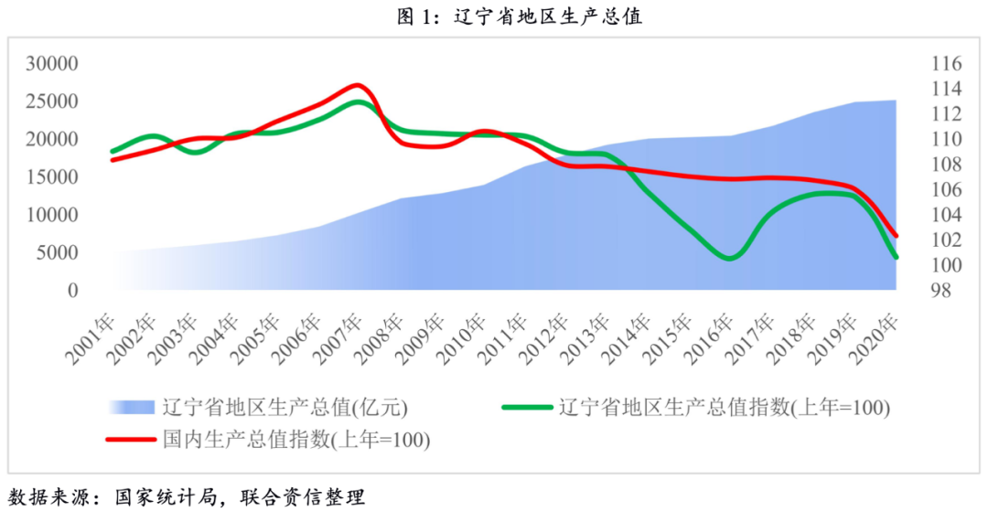 遼寧省在裝備制造、石化、冶金等領域產業實力較為雄厚,作為新中國工業搖籃,遼寧省為國家的改革開放和現代化建設做出了重大貢獻。但近年來,受體制機制性矛盾、傳統產業轉型升級困難、人口流失等因素影響,遼寧省內經濟實體經營壓力持續加大,區域經濟增長承壓。從數據上看,2016—2020年,遼寧省地區生產總值增速同比增長分別為-2.5%、4.2%、5.7%、5.5%和0.6%,均低于國內生產總值增速;從遼寧省國內生產總值在全國省份的排名情況來看,遼寧省在全國31個省市自治區的GDP排名也在不斷下降,2010年遼寧省GDP總量在31個省(自治區、直轄市)排名第7位,而2020年排名降至第16位。