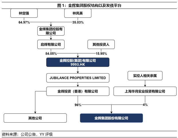 不若其他閩/粵系房企存在一代旁系家族成員持股,金輝集團的股權集中,實控人之子已于企業內部擔任高管,治理結構穩定。截至2021年3月31日,金輝集團(9993.HK)由林定強及其配偶林鳳英持84.05%絕對多數股權,其子林宇雖無持股,但已于2011年進入公司并于2019年任執行董事兼執行總裁一職。