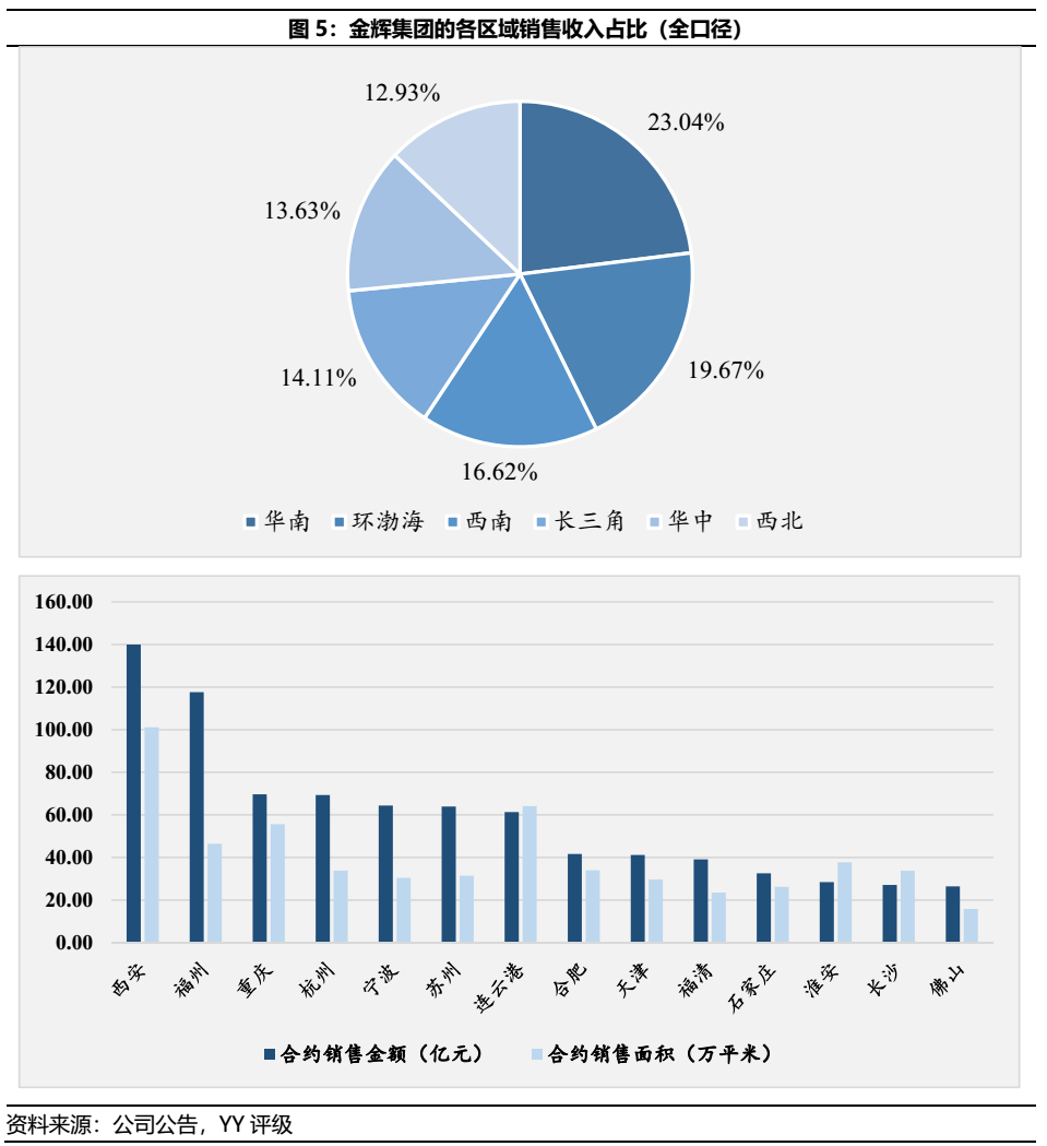 金輝集團的跨區域戰略布局緩慢,自96年于福州成立后至16年進駐緊鄰的灣區花了20年,其中或有02年與融僑合作致使金輝自有品牌布局較慢所致,但對于核心城市的全國化布局仍稍顯緩慢。與其他房企自一線城市串聯至二三線城市的模式不同,金輝集團早期布局上海并遷總部于北京后,其發展區域圍繞著西北、西南和東北區域,而非自一線有序下沉至二三線,此一節奏或為導致金輝集團的發展滯后于其他知名房企的主因。