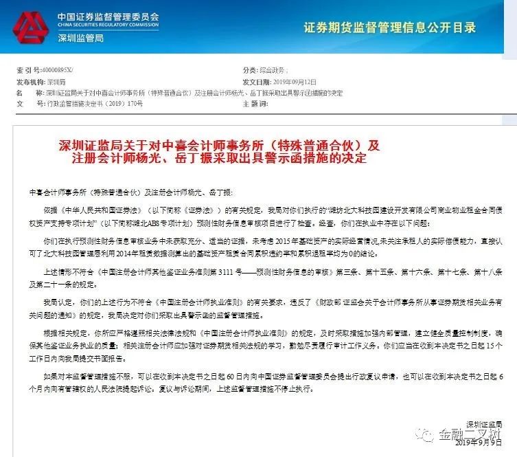 根據(jù)相關(guān)規(guī)定,責(zé)令其應(yīng)嚴(yán)格遵照相關(guān)法律法規(guī)和《中國(guó)注冊(cè)會(huì)計(jì)師執(zhí)業(yè)準(zhǔn)則》的規(guī)定,及時(shí)采取措施加強(qiáng)內(nèi)部管理,建立健全質(zhì)量控制制度,確保其他鑒證業(yè)務(wù)執(zhí)業(yè)的質(zhì)量;相關(guān)注冊(cè)會(huì)計(jì)師應(yīng)加強(qiáng)對(duì)證券期貨相關(guān)法規(guī)的學(xué)習(xí),勤勉盡責(zé)履行審計(jì)工作義務(wù);應(yīng)當(dāng)在收到本決定書(shū)之日起15個(gè)工作日內(nèi)向深圳證監(jiān)局提交書(shū)面報(bào)告。