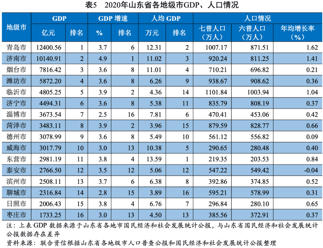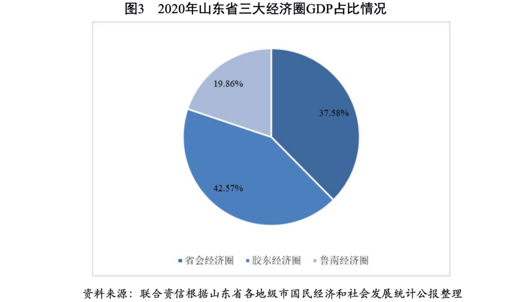 山東省形成了省會、膠東和魯南三大經濟圈,其中以青島市、煙臺市等沿海城市為主的膠東經濟圈和以濟南市為主的省會經濟圈的經濟和財政實力較強。2020年,山東省各地級市經濟發(fā)展分化程度明顯,青島市和濟南市經濟實力較強,經濟增速較快,人口虹吸效應強。