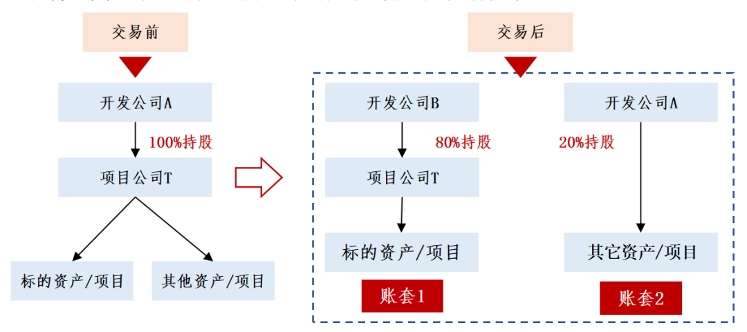 本次我們只講投拓實(shí)操中最常見到模式③,即是我方通過收購對(duì)方部分股權(quán),但雙方約定該部分股權(quán)對(duì)應(yīng)目標(biāo)地塊100%的開發(fā)收益權(quán),開發(fā)過程中,采用分帳套的方式獨(dú)立核算、分別管理。而非目標(biāo)地塊則仍由項(xiàng)目公司原股東繼續(xù)開發(fā)。