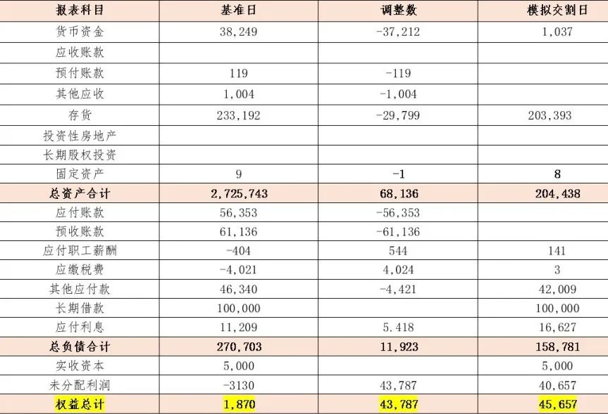 3)拆分以后的資產(chǎn)負(fù)債表,非目標(biāo)資產(chǎn)部分的資產(chǎn),負(fù)債以及各項(xiàng)權(quán)益均歸屬于原合作方,與收購方無關(guān)。