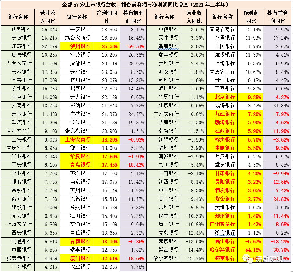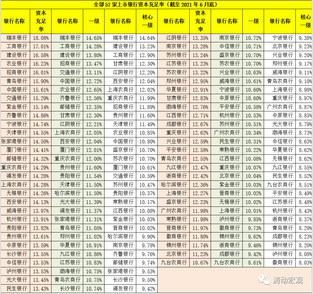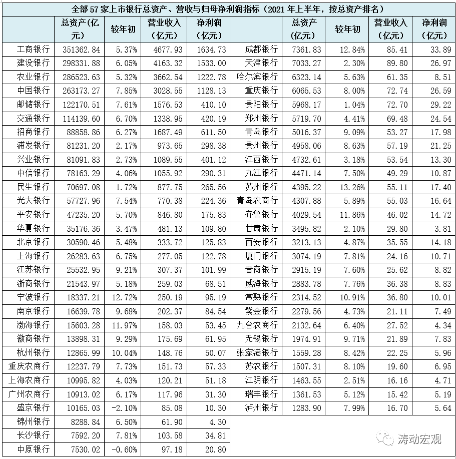 原標(biāo)題: 全部57家上市銀行主要指標(biāo)排名(截至2021年6月底)