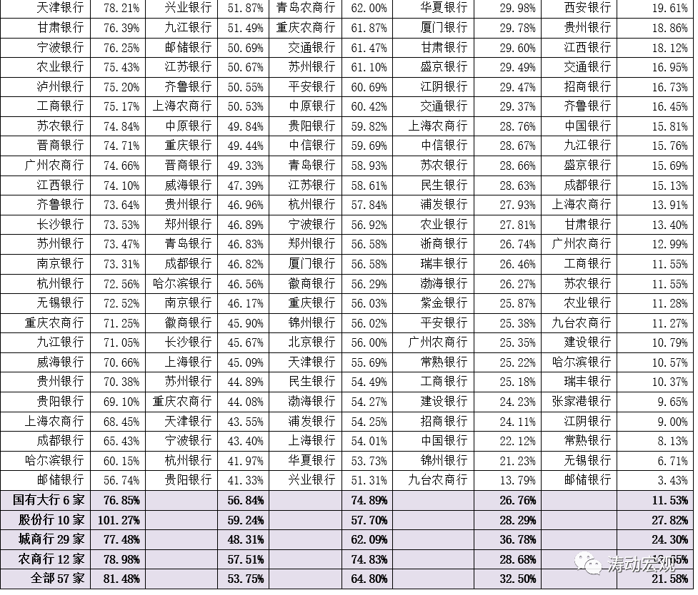 1、上市銀行的存貸比平均水平為81.46%,較2020年底的80.54%繼續(xù)上升。其中,股份行最高(達(dá)到101.27%)、國有大行最低(76.85%)。其中,8家銀行的存貸比超過100%,5家銀行的存貸比位于90-100%之間。