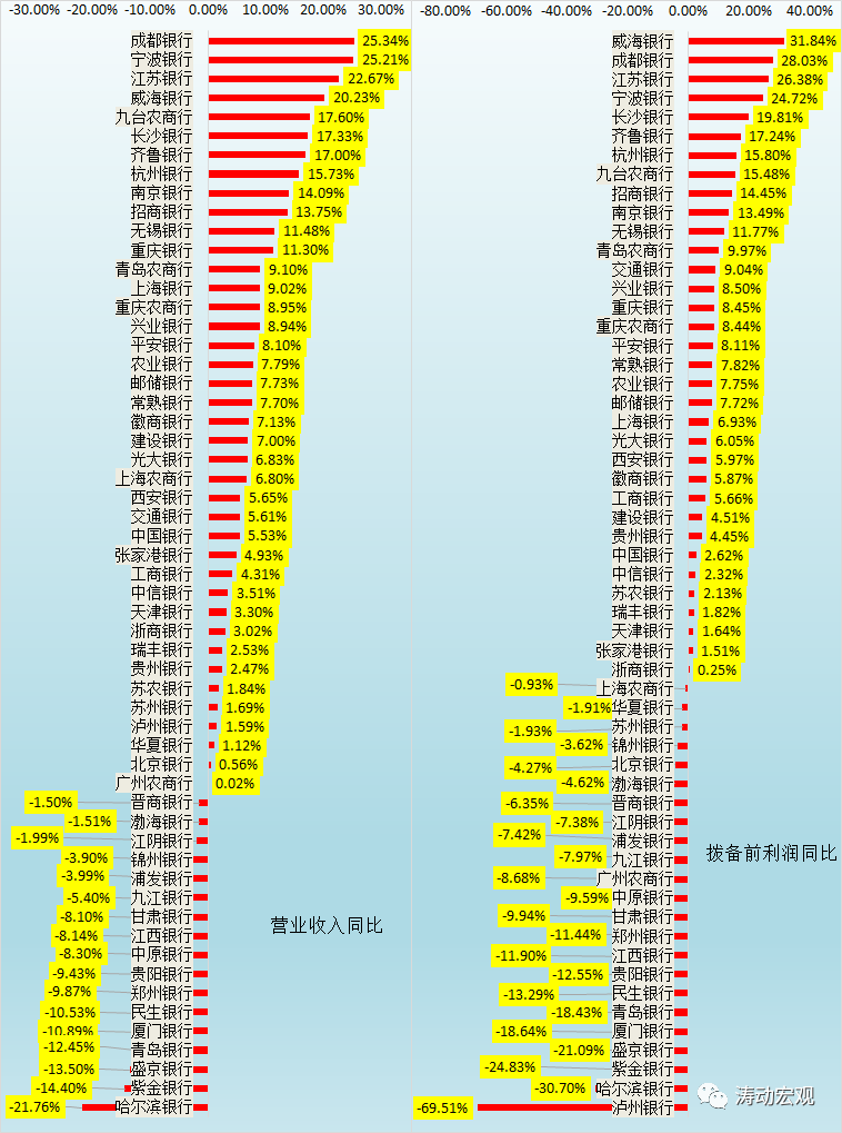 3、受撥備計(jì)提因素影響,22家銀行的撥備前利潤同比出現(xiàn)下降