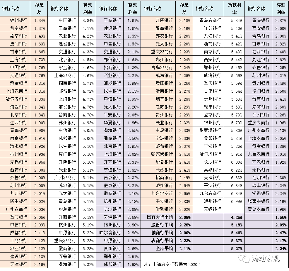 今年上半年,國有大行、股份行、城商行以及農(nóng)商行的凈息差分別為2.08%、2.28%、2%和2.23%,全部上市銀行的凈息差平均為2.11%。
