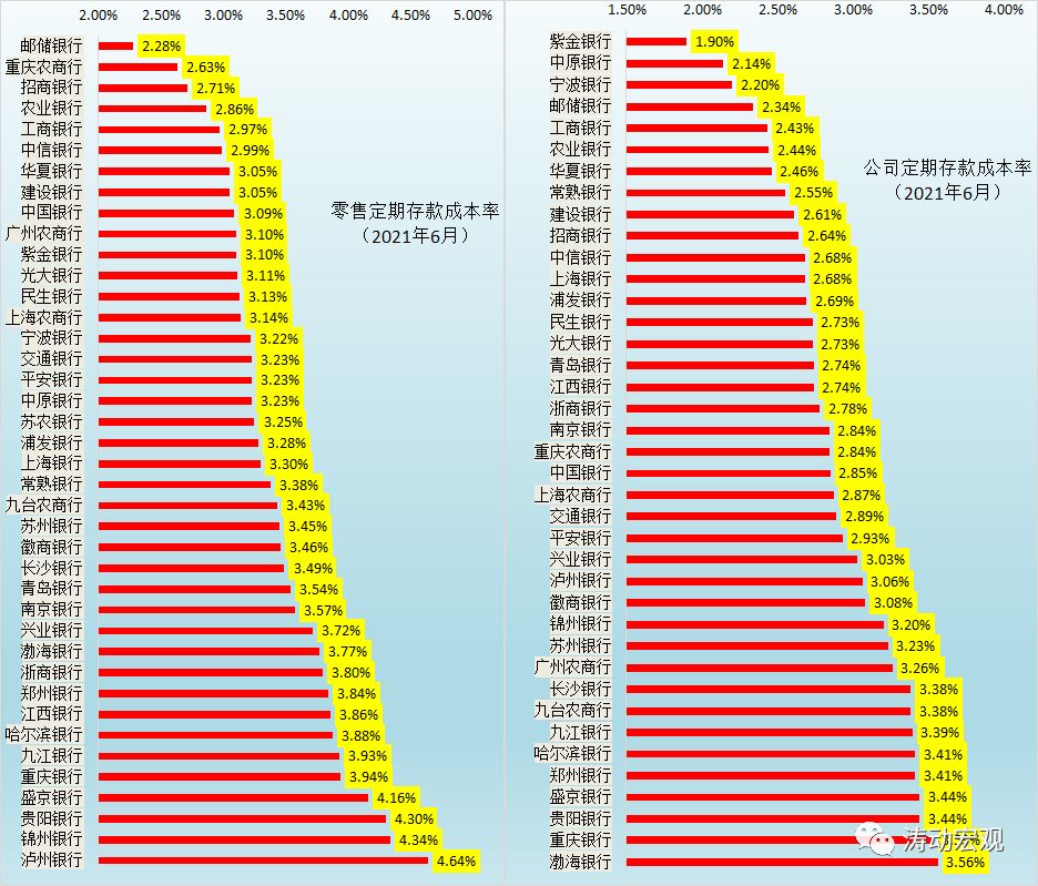 1、40家銀行的零售定期存款利率平均水平為3.41%,其中有9家銀行低于3.10%、14家銀行高于3.50%、4家銀行高于4%。零售定期存款利率較低的銀行主要有郵儲銀行、重慶農(nóng)商行、招行、農(nóng)行、工行、中信銀行、華夏銀行、建行與中行,零售定期存款利率較高的銀行主要有瀘州銀行、錦州銀行、貴陽銀行、盛京銀行、重慶銀行、九江銀行、哈爾濱銀行、江西銀行、鄭州銀行、浙商銀行、渤海銀行、興業(yè)銀行、南京銀行與青島銀行。