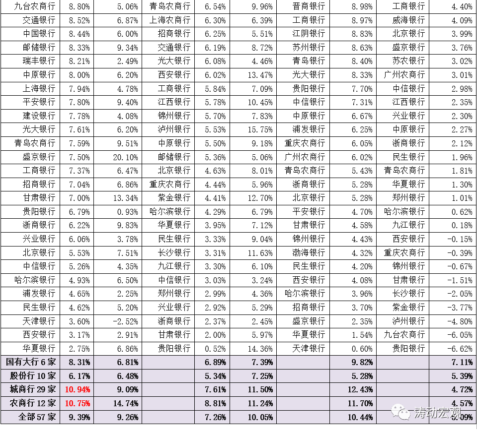 例如,瀘州銀行的凈利潤同比增速為25.53%,但其撥備前利潤同比卻大幅下降69.51%,諸如上海農(nóng)商行、華夏銀行、青島銀行、晉商銀行、廈門銀行、北京銀行、九江銀行、渤海銀行、江西銀行、錦州銀行、中原銀行、甘肅銀行、貴陽銀行、浦發(fā)銀行、紫金銀行、鄭州銀行、廣州農(nóng)商行等銀行同樣如此。