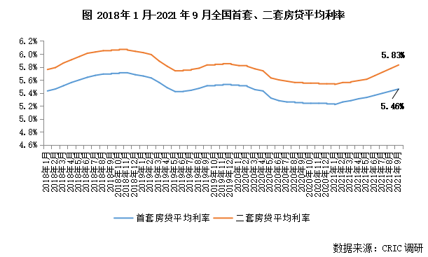 而從房貸利率層面,我們也不難看出端倪,受銀行信貸收緊影響,2月開(kāi)始,全國(guó)房貸利率全面止跌回升,并趨勢(shì)性上移。據(jù)CRIC調(diào)研數(shù)據(jù),2021年9月,全國(guó)首套房平均房貸利率5.46%,較2020年底上漲23BP,二套房貸款平均利率5.83%,較2020年底上漲29BP。