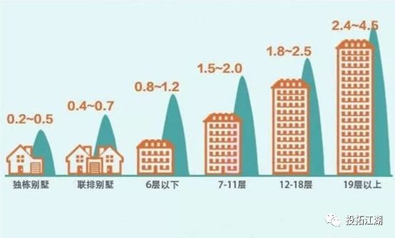 我們先來(lái)看一張圖,這是很多做設(shè)計(jì)的人總結(jié)的一張速算的經(jīng)驗(yàn)圖,假設(shè)在30%密度的情況下,產(chǎn)品的平均樓層如下: