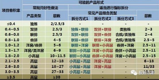 備注:上面的三種情況,我都是按最常見的30%密度考慮的,且以低密產(chǎn)品最大化為原則。如果密度偏低那么低容積率產(chǎn)品占比應(yīng)該適當(dāng)提高,如果密度偏高那么低容積率產(chǎn)品占比應(yīng)該適當(dāng)降低。