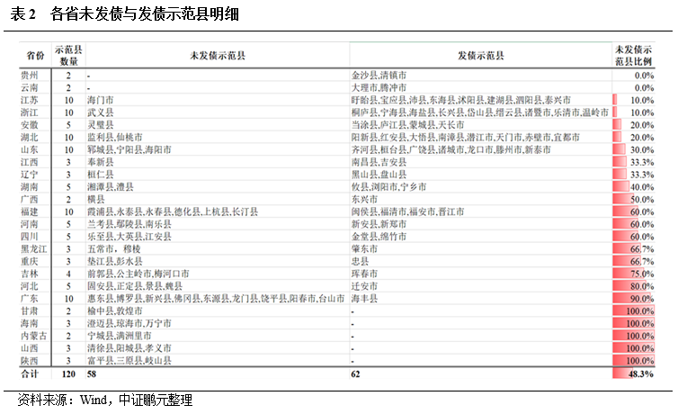 1.甘肅、海南、內蒙古、山西、陜西五省,歷史上從未有示范縣平臺發過債的,或與縣級經濟較弱、平臺資質較差、金融資源偏少等相關。