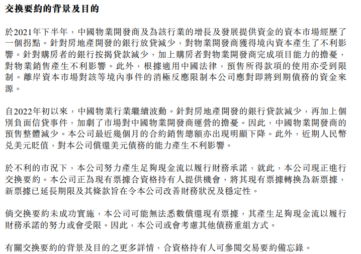 交換要約一經實行,將改善本公司的整體財務狀況、延長其債務的到期日、強化其資產負債表及提升其現金流管理。