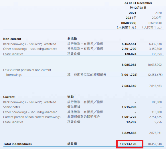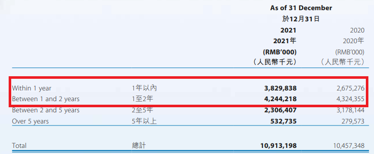 其中,一年期的債務超38億元,2020年末時該數字為不到27億元。