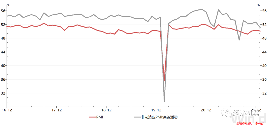 圖3 PMI與非制造業(yè)商務(wù)活動(dòng)指數(shù)