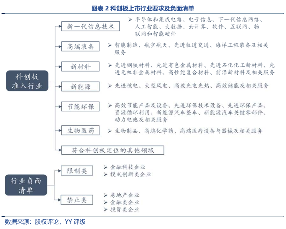 科創板準入行業要求方面,必須是下圖行業領域的高新技術產業和戰略性新興產業,且不得在負面清單內。