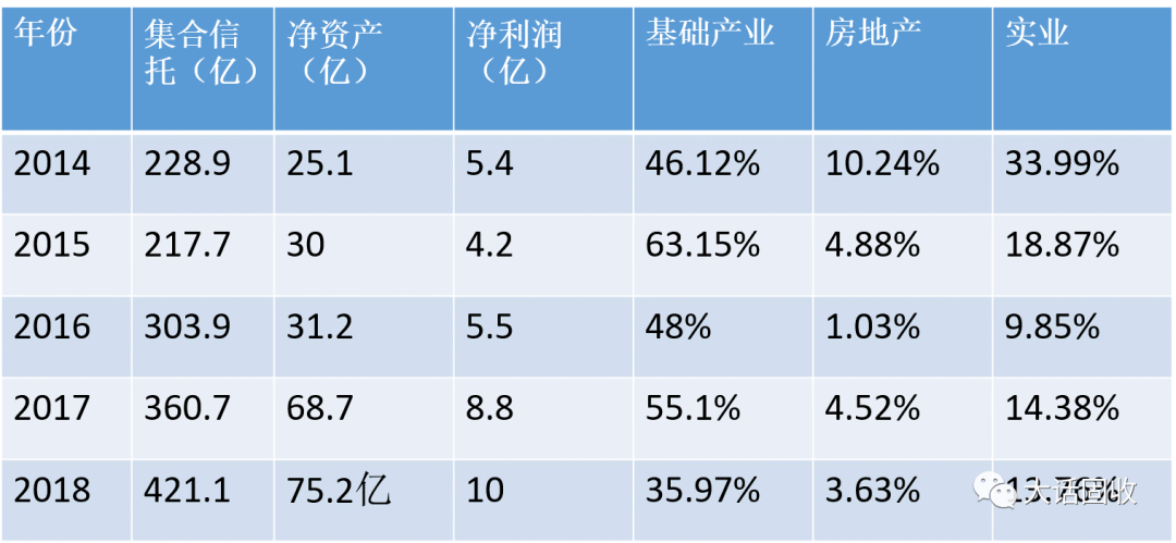 從經(jīng)營(yíng)上來看,2017年之后有比較突出的變化。相比于前三年,凈資產(chǎn)與凈利潤(rùn)雙雙翻倍,集合信托管理規(guī)模也接近翻倍。2017年發(fā)生了什么呢?