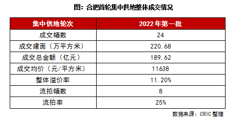 3月17-25日,合肥新2022年首輪集中供地在經(jīng)歷了一輪延期后最終塵埃落定,本次土拍合計(jì)成交24宗含宅用地(其中2宗為純租賃用房),總成交金額達(dá)189.62億元,成交總建面220.68萬(wàn)平方米。