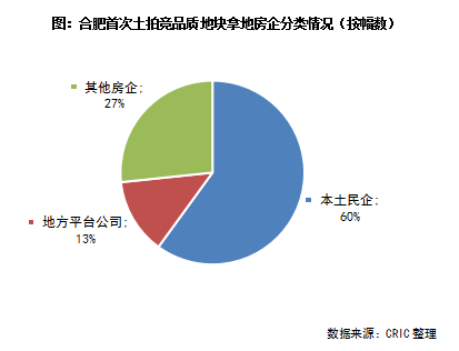 從拿地結(jié)果來(lái)看,合肥本土房企表現(xiàn)強(qiáng)勢(shì):在15宗競(jìng)品質(zhì)地塊中,本土民企拿下9宗,安徽邦泰、安徽天阜、安徽置地、偉星、尚澤等均有所斬獲,此外安徽高速也競(jìng)得2宗濱湖科學(xué)城地塊,本土企業(yè)投資積極性復(fù)蘇,且整體表現(xiàn)非常強(qiáng)勢(shì),拿下六成競(jìng)品質(zhì)地塊。