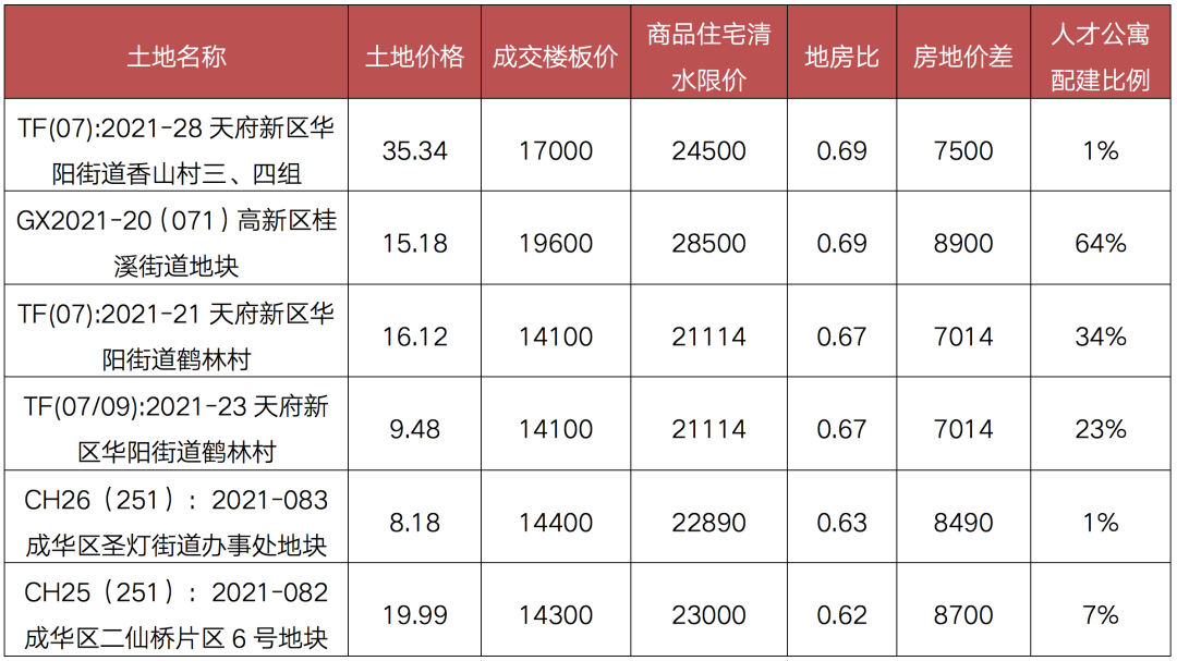 表:成都三輪集中土拍中觸頂?shù)貕K情況盈利情況(億元,元/平方米)