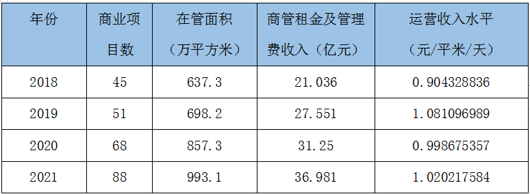 表2:2018-2021年寶龍商業(yè)項(xiàng)目租金收入