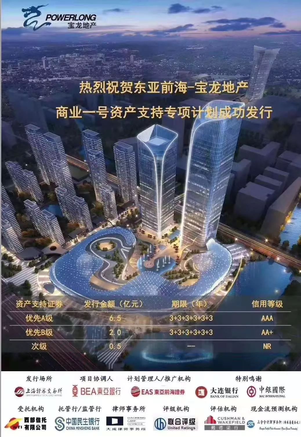 近日,由東亞前海證券擔任計劃管理人的“東亞前海-寶龍地產(chǎn)商業(yè)1號資產(chǎn)支持專項計劃”于上交所成功發(fā)行,規(guī)模9億元。
