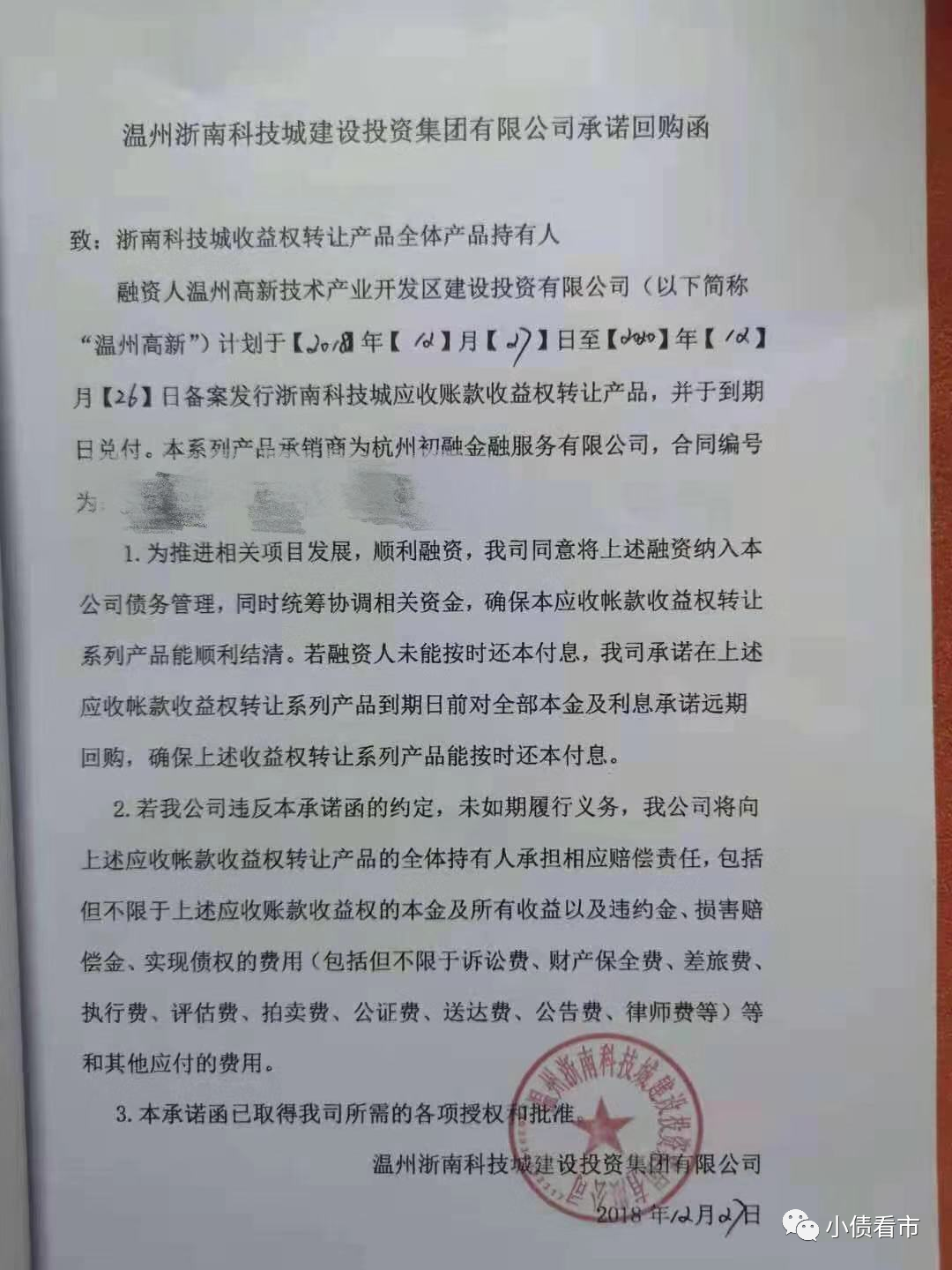 浙南科技城建投集團(tuán)承諾回購函