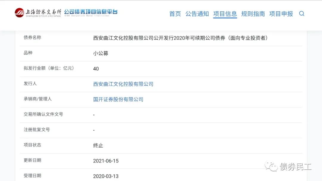2、可續期公司債券。西安曲江文化控股有限公司公開發行2020年可續期公司債券(面向專業投資者),擬發行金額40億元,申報時間為2020年3月13日,終止時間為2021年6月15日。
