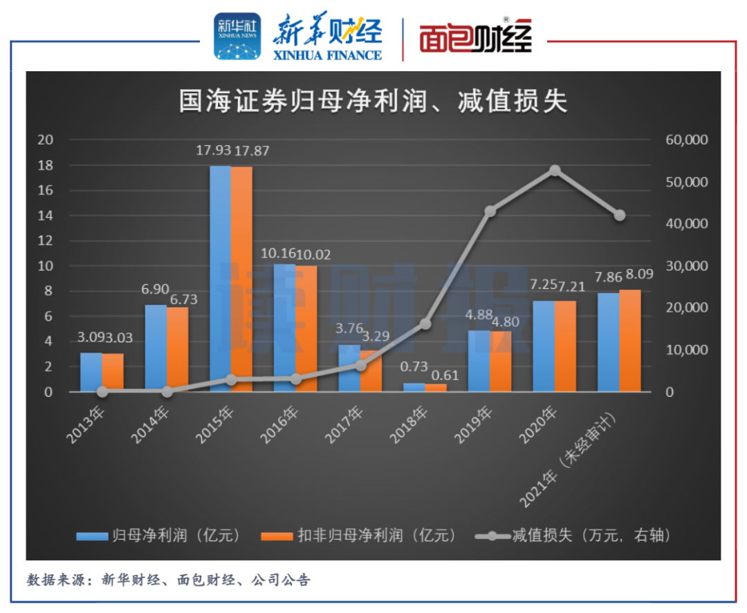 圖2:2013年至2021年國海證券歸母凈利潤、減值損失