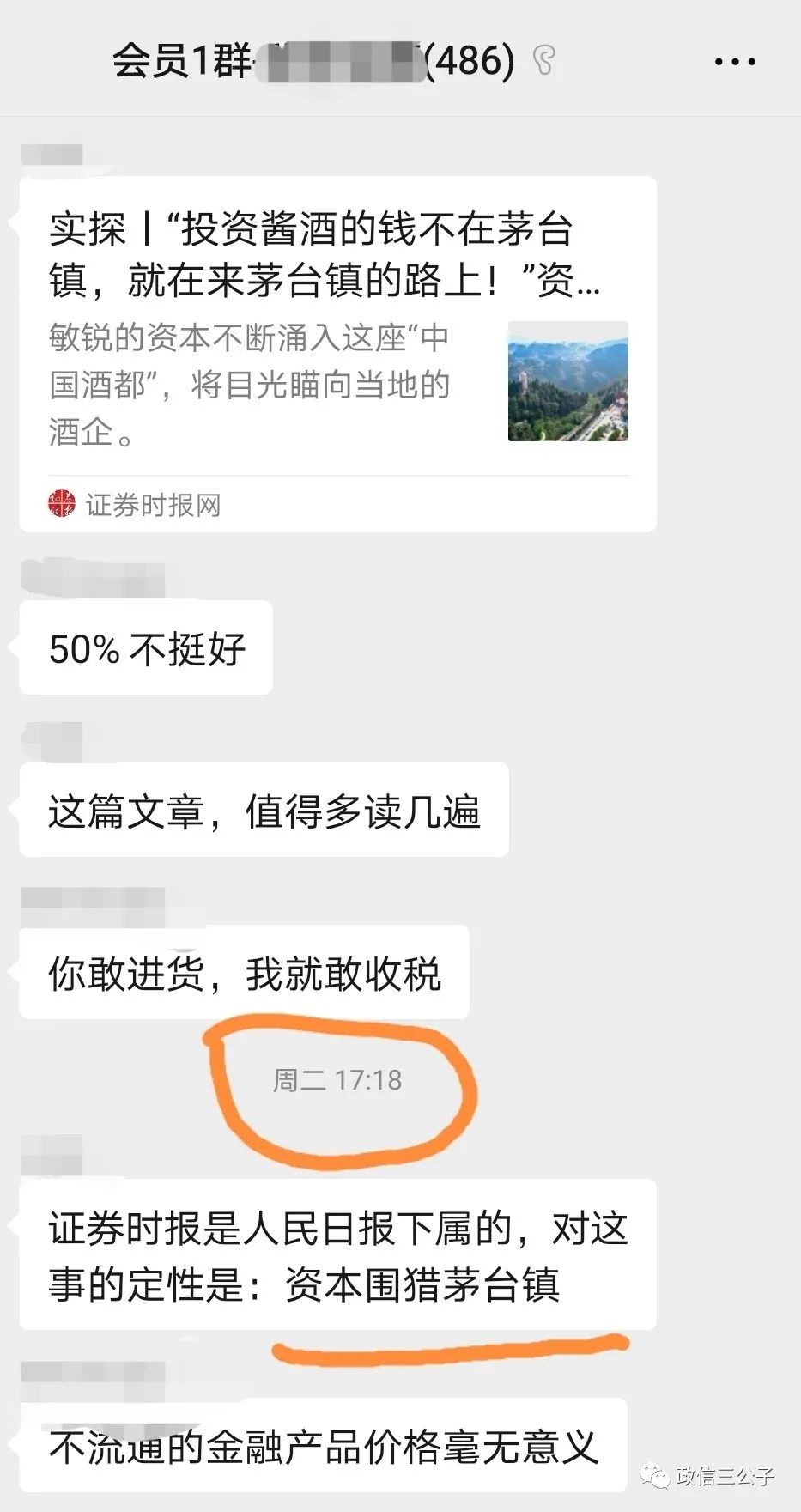我又在會員群里轉發了篇文章,建議規避。資本圍獵茅臺鎮是非常嚴重的定性。畢竟,連互聯網大佬們都頻繁光顧茅臺鎮,準備跨界投酒廠了,有些火熱過頭了。