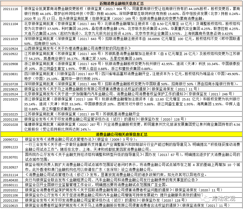 特別是2016年3月24日,央行和銀監會聯合發布《關于加大對新消費領域金融支持的指導意見》,明確提出“鼓勵汽車金融公司、消費金融公司等發行金融債券;鼓勵符合條件的汽車金融公司、消費金融公司通過同業拆借市場補充流動性;大力發展個人汽車、消費、信用卡等零售類貸款信貸資產證券化”,進一步擴大了消費金融公司相關業務的落地性。2020年11月6日,銀保監會辦公廳發布《關于促進消費金融公司和汽車金融公司增強可持續發展能力提升金融服務質效的通知》,明確兩類公司可通過銀登開展正常類信貸資產收益權轉讓業務,亦明確其可以在銀行間市場發行二級資本債來補充資本。