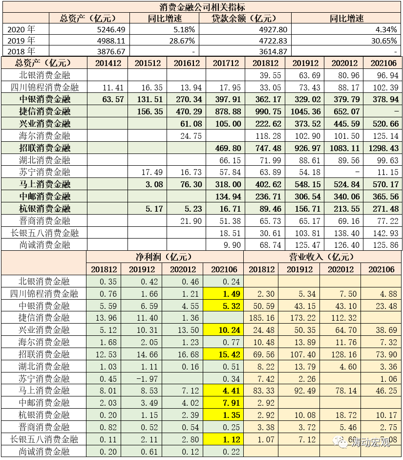 我們看到,招聯消費金融、興業消費金融等仍在保持著快速增長勢頭,體量已分別達到1298億元和520億元(2021年6月底),合計已超1800億元。不過,曾經作為消費金融行業頭部機構的捷信消費金融2020年以來則呈現出明顯萎縮勢頭(其總資產已從2019年的1045億元萎縮至2020年底的652億元)。