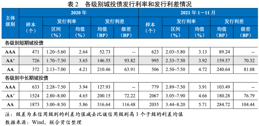 短期城投債的發(fā)行利率和發(fā)行利差有所上升,中長(zhǎng)期城投債的發(fā)行利率變化不大、發(fā)行利差均有所下降。