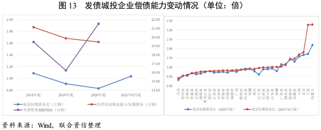 短期償債能力指標(biāo)整體有所改善,但部分地區(qū)發(fā)債城投企業(yè)短期償債能力指標(biāo)表現(xiàn)仍較弱。
