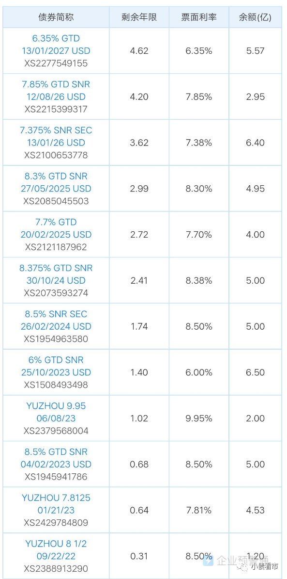 《小債看市》統(tǒng)計(jì),目前禹洲集團(tuán)存續(xù)美元債13只,存續(xù)規(guī)模56.75億美元,其中將有超10億美元債于一年內(nèi)到期。