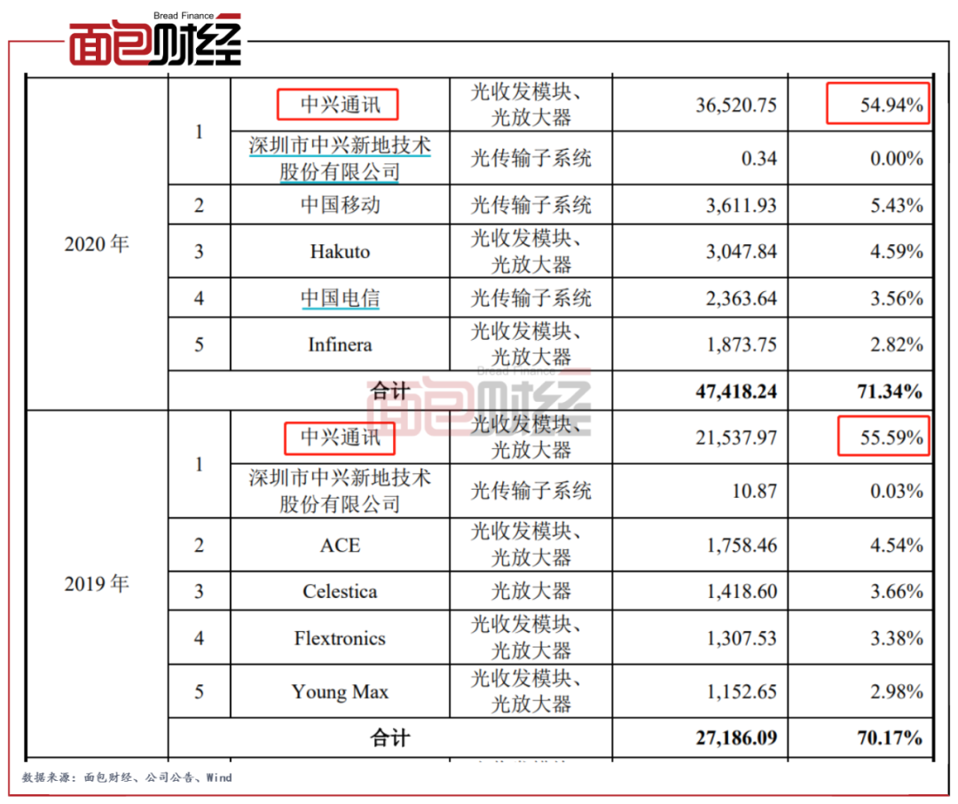 客戶集中度較高 向中興通訊的銷售占比超50%