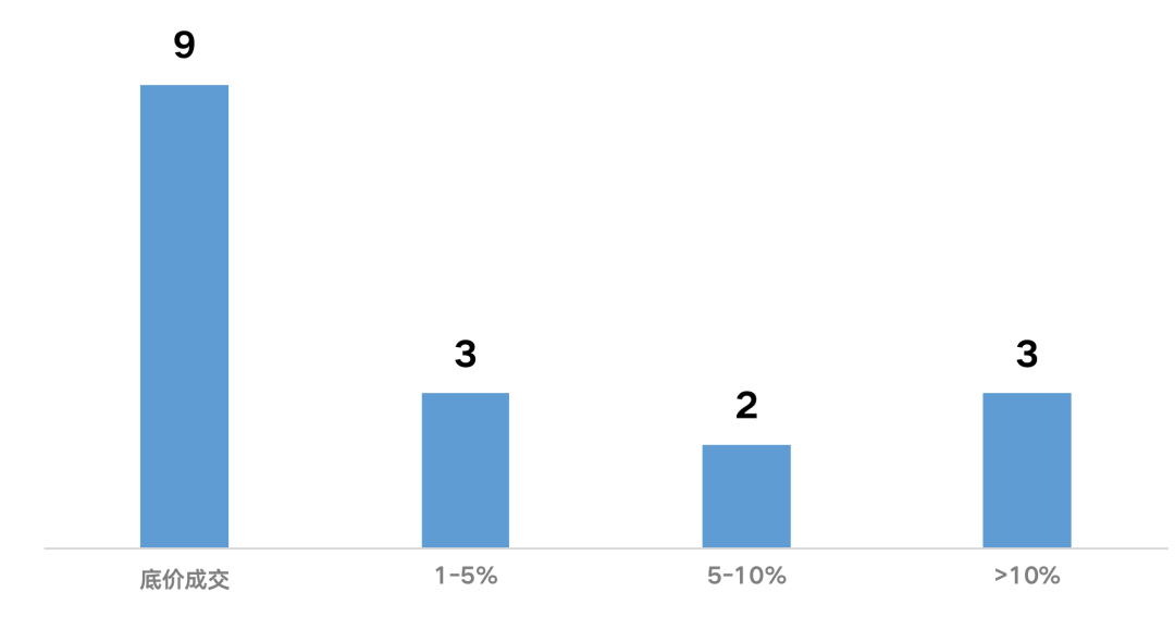 圖:北京2022年首次集中供地成交溢價分布情況(單位:萬平方米)