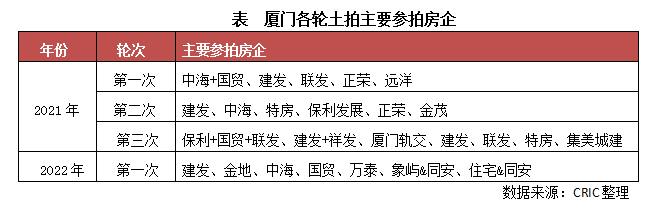 與去年三輪集中土拍大部分地塊被本土國企托底不同,由于本輪土拍島內優質地塊較多,外來品牌房企的參與度明顯提升,保利、招商、中海、金地、華潤、中交、華僑城等多家品牌房企均有參拍,并且金地和中海在思明區和集美區還分別搖得一子。