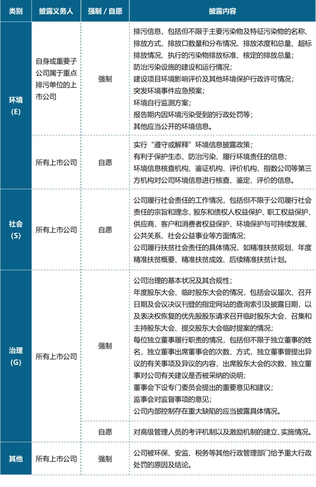 根據(jù)上述規(guī)定。境內(nèi)上市公司ESG信息披露包括強(qiáng)制披露范圍和自愿披露范圍: