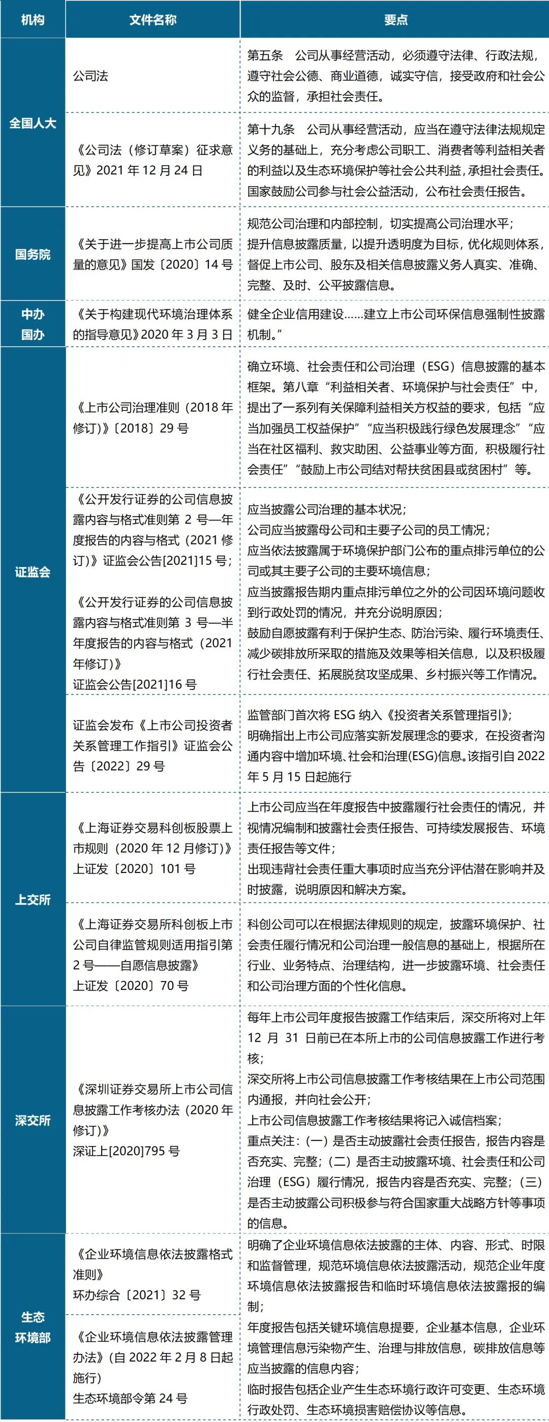 需要注意的是,除了滬深交易所及證監(jiān)會(huì)的要求,上市公司在從事融資活動(dòng)(如綠色信貸、發(fā)行綠色債券)時(shí),可能同樣面臨環(huán)境、社會(huì)責(zé)任的報(bào)告義務(wù)。