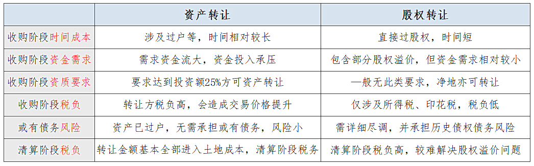 在實操中,可以說90%以上的房地產收并購都是股權收購!為啥?我們通過下述對比,就能很清楚的看到兩種轉讓模式的優劣情況。
