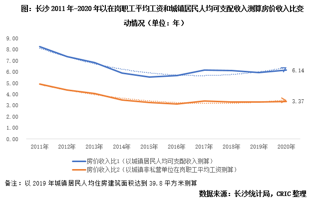 因長沙整體房價(jià)在全國一二線城市中仍處“洼地”,以城鎮(zhèn)居民人均可支配收入測算的房價(jià)收入比僅為6.14年,在中部六省省會(huì)城市中處末位,城市經(jīng)濟(jì)發(fā)展面好,房價(jià)低,買房壓力小,剛需仍是驅(qū)動(dòng)城市成交規(guī)模增長的重要力量,而對于本地公務(wù)員等高收入群體而言,買房換房更是毫無壓力,以在崗職工平均工資測算的房價(jià)收入比僅為3.37年,此外,以城鎮(zhèn)居民人均可支配收入測算的房價(jià)收入比均有穩(wěn)步下行并持穩(wěn)的趨勢,由此可見,居民購買力尚處于較為充沛的區(qū)間。
