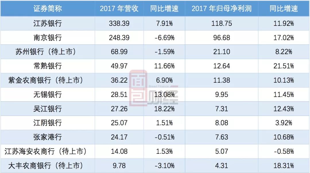 另外兩家較小農商行中,海安農商行2017年底營收14.08億元,同比微增1.5%;凈利潤5.07億元與2016年比基本保持穩定。大豐農商行2017營業收入9.78億元,同比下降3%,凈利潤4.31億元,同比增幅達18.31%。