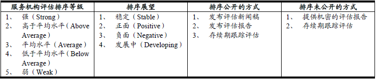 表二 標普的“服務機構(gòu)”評估排序