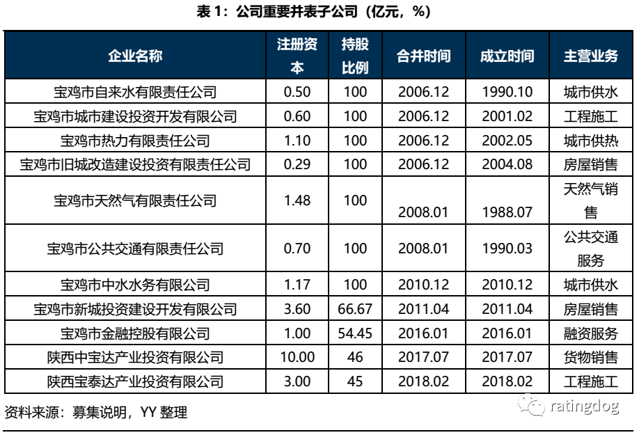 寶雞市投資(集團)有限公司(下稱“寶雞投”或“公司”)是寶雞市唯一的地市級主要城投平臺。公司業務以包含寶雞市城區供熱、供水、公交服務的公用事業為主,在寶雞市具有壟斷地位,整體盈利能力較弱,持續受到政府補貼支持,其作為地市級主要平臺,具備了點、線、面三位一體的特征。