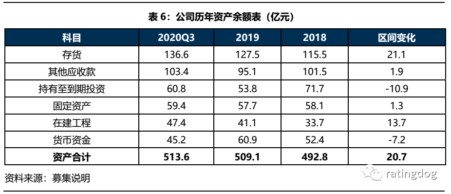 從靜態角度看,截至2020年9月末,公司資產總額為513.6億元,其中余額較大的科目為:1、存貨,主要為開發成本,包括土地使用權、三通一平、土地拆遷補償以及棚改工程建設成本;2、其他應收款,主要為公司對其他企業的棚戶區改造借款、往來款、工程款等,對象基本為寶雞當地企事業單位及政府機構,成色足;3、持有至到期投資:主要為發放給寶雞市當地國企和公用事業單位的長期委托貸款(58.5億元),包括公司承接國開行專項貸款并轉貸給棚改項目實施單位的棚改項目資金,以及公司以自有資金發放的委托貸款;4、固定資產,主要房屋、建筑物、路橋基礎設施等;5、在建工程,主要由主營的供熱、供水、公共交通服務相關的基建項目、寶雞大劇院和產業園項目構成。