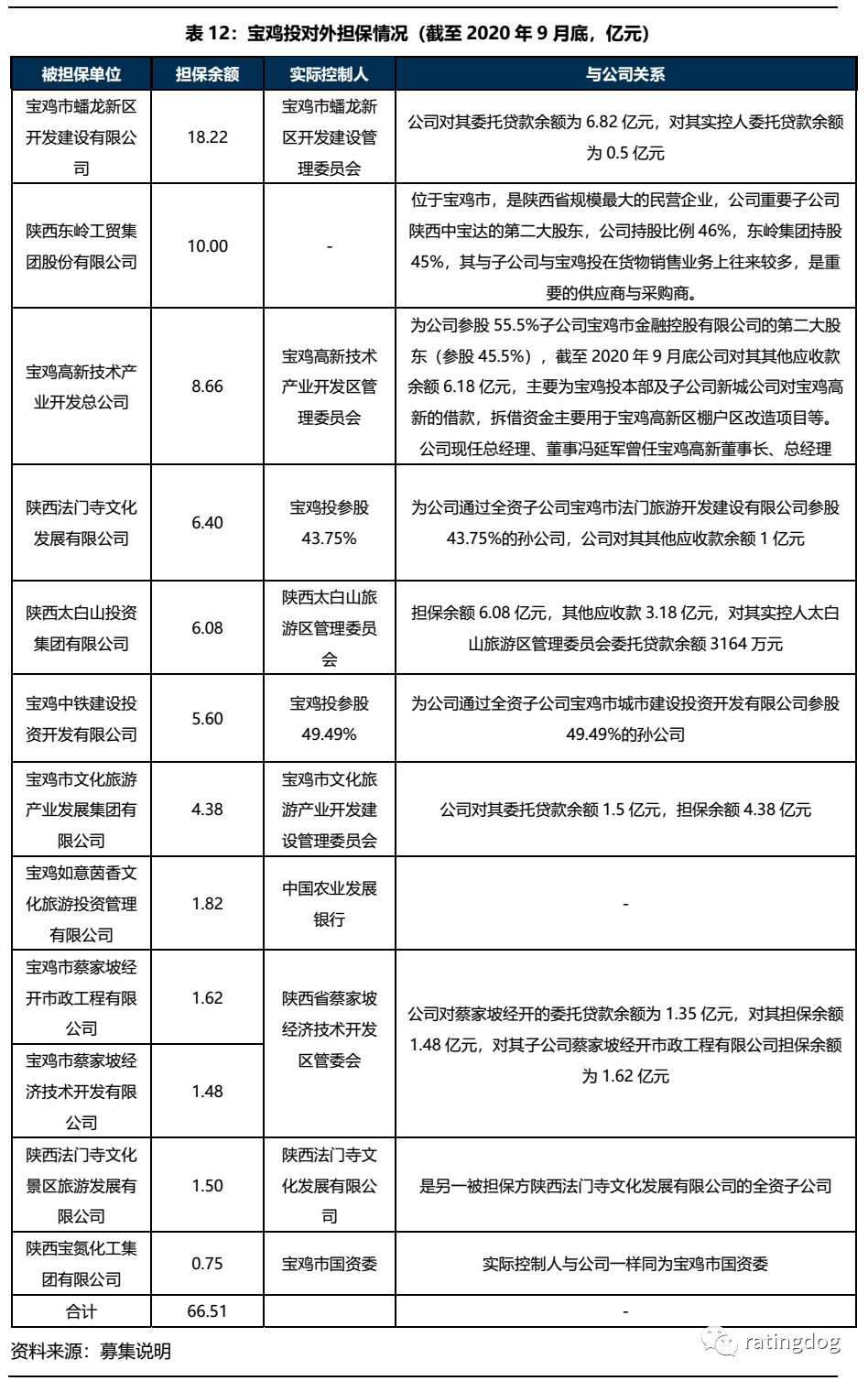 常在河邊走,哪有不濕鞋,公司訴訟中的擔保糾紛牽引我們把目光投向公司的對外擔保情況。截至2020年9月末,公司對外擔保余額為66.51億元,占當期凈資產比例為56.26%,擔保規模較大,對象大部分為寶雞市內國有企業,其中陜西太白山投資集團有限公司和寶雞市文化旅游產業發展集團有限公司出現債務負擔較重、流動性困難、被列為失信被執行人的情況,同時還有對民企陜西東嶺集團擔保余額為10億元。