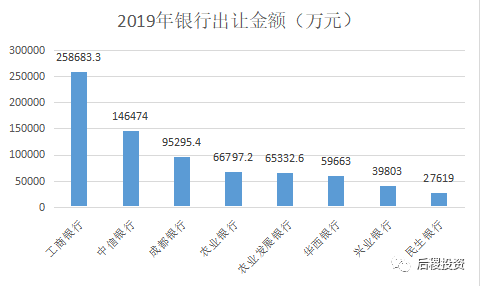 從上圖來看,工商銀行排名第一,全年出讓金額近26億元,占比34%;中信銀行與成都銀行排名二三,其余五家銀行出讓金額相差不大。
